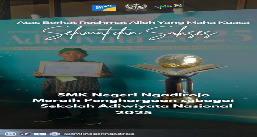 SMKN Ngadirojo berhasil meraih Penghargaan Adiwiyata Nasional tahun 2025 (Rabu, 3/12/2025), sebuah apresiasi bergengsi dari Kementerian Lingkungan Hidup dan Kehutanan (KLHK) atas komitmen sekolah dalam menerapkan budaya peduli lingkungan secara berkelanjutan.